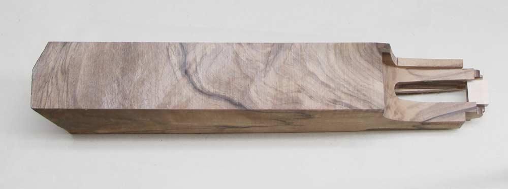 カスタムストックの製作材料(非オリジナル品)欧州産クルミ材です。機関部への接合までが完成されております。ベレッタDT11の他DT10やASEゴールドに適合します。上部・下部・後部の大きさは、通常のストック寸法と比べるとかなり大きいので、トラップ、スキート、ハイリブ等に対応する寸法であることと、厚みもコム付近および台尻付近まで6cm近くありますので、キャストオフの分量幅も多く、色々なサイズに加工できます。