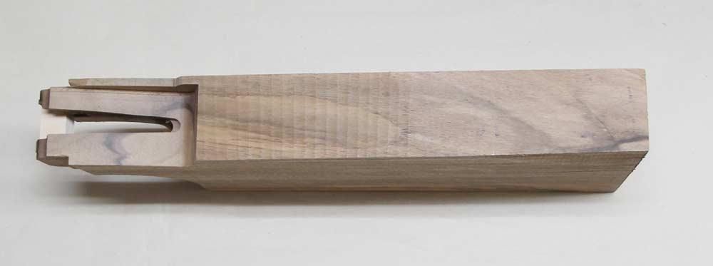 カスタムストックの製作材料(非オリジナル品)欧州産クルミ材です。機関部への接合までが完成されております。ペラッツィ ボックスロック引き座着脱モデルに適合します。上部・下部・後部の大きさは、通常のストック寸法と比べるとかなり大きいので、トラップ、スキート、ハイリブ等に対応する寸法であることと、厚みもコム付近および台尻付近まで6cm近くありますので、キャストオフの分量幅も多く、色々なサイズに加工できます。