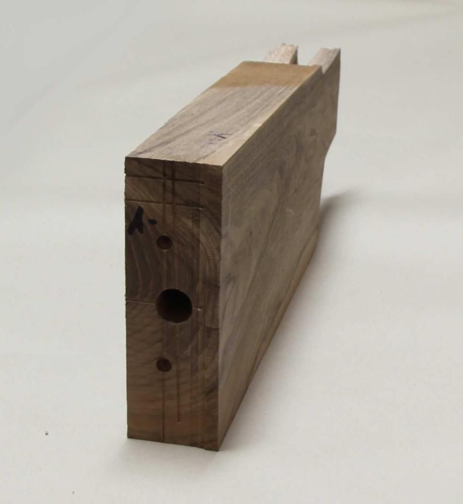カスタムストックの製作材料(非オリジナル品)欧州産クルミ材です。機関部への接合までが完成されております。ペラッツィ ボックスロック引き座着脱モデルに適合します。上部・下部・後部の大きさは、通常のストック寸法と比べるとかなり大きいので、トラップ、スキート、ハイリブ等に対応する寸法であることと、厚みもコム付近および台尻付近まで6cm近くありますので、キャストオフの分量幅も多く、色々なサイズに加工できます。